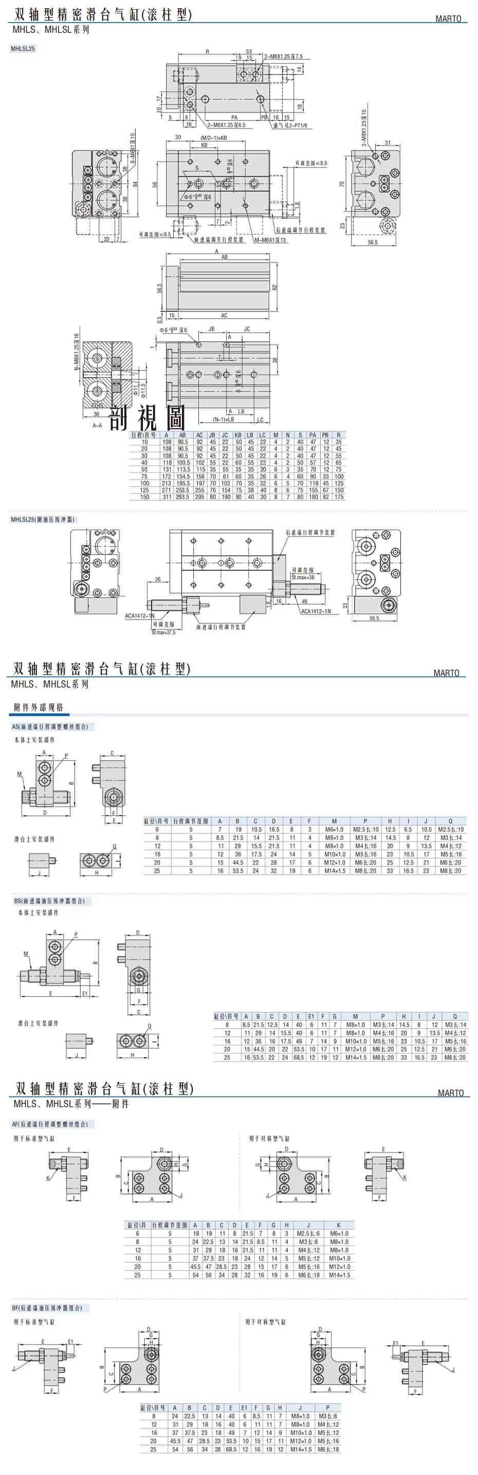 雙軸型精密滑臺氣缸(滾柱型)MHLS、MHLSL系列